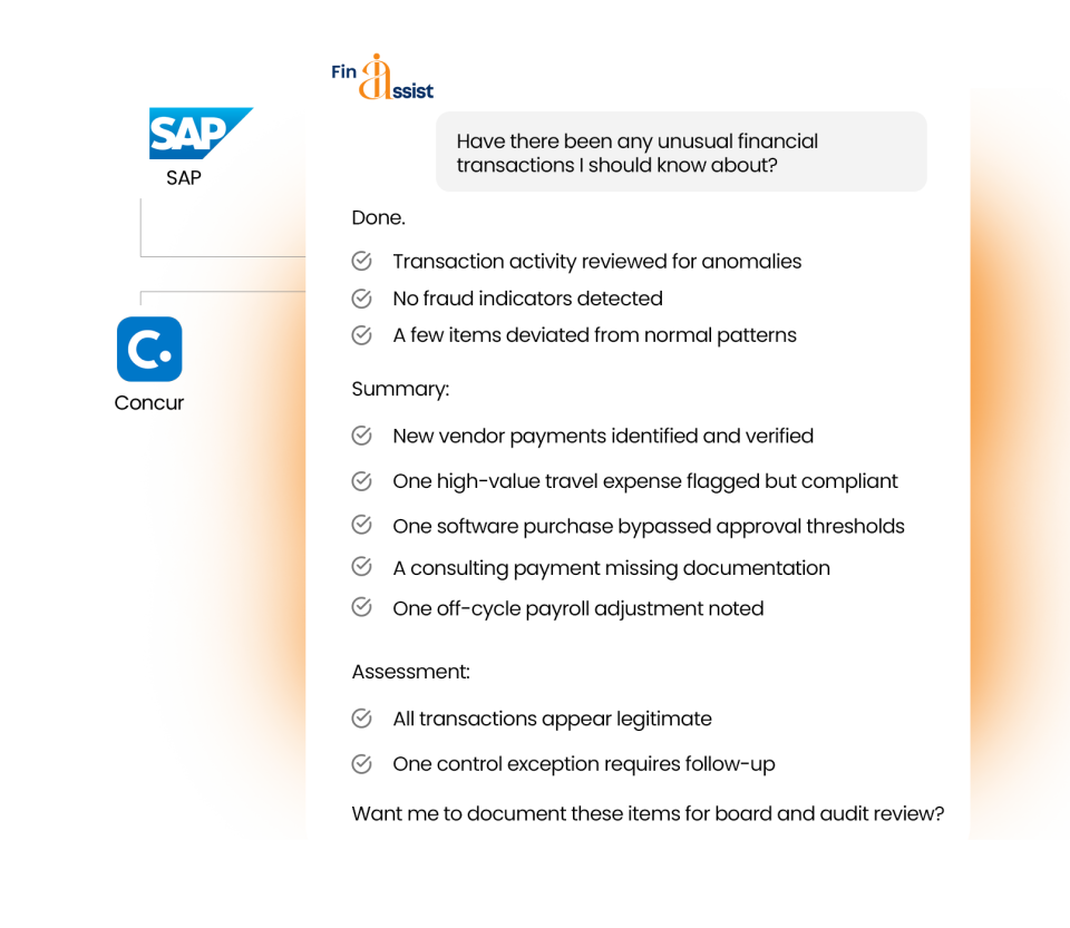 No. The assistant supports by giving insights and suggestions, but finance professionals still make all final decisions and own the outputs.