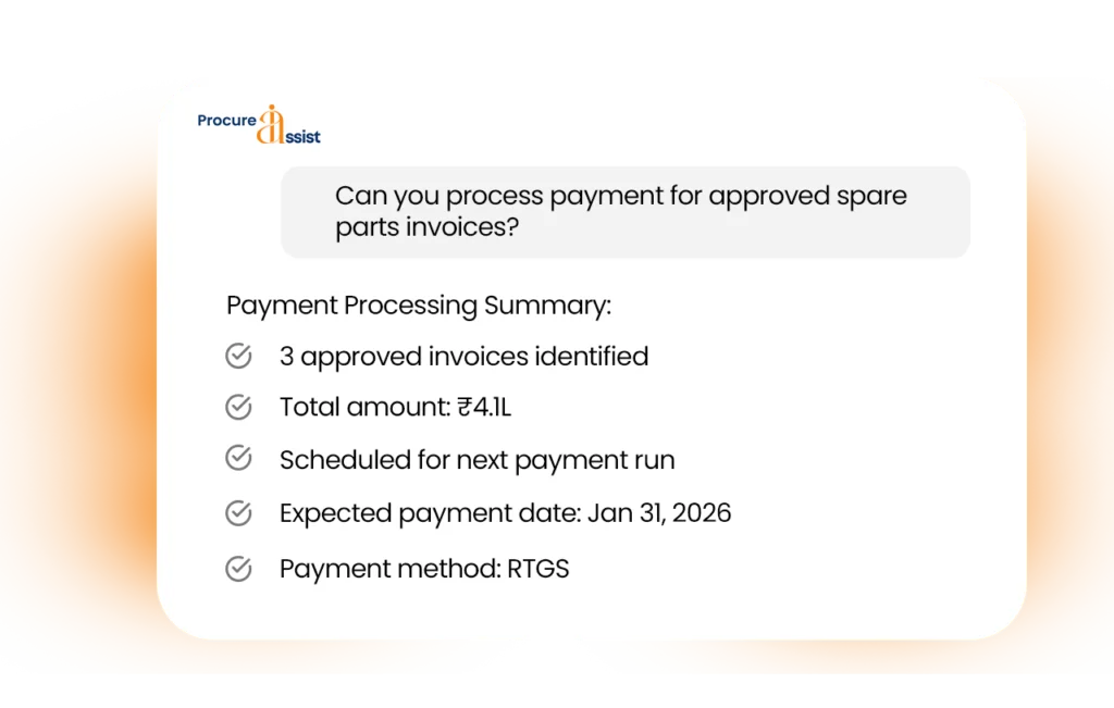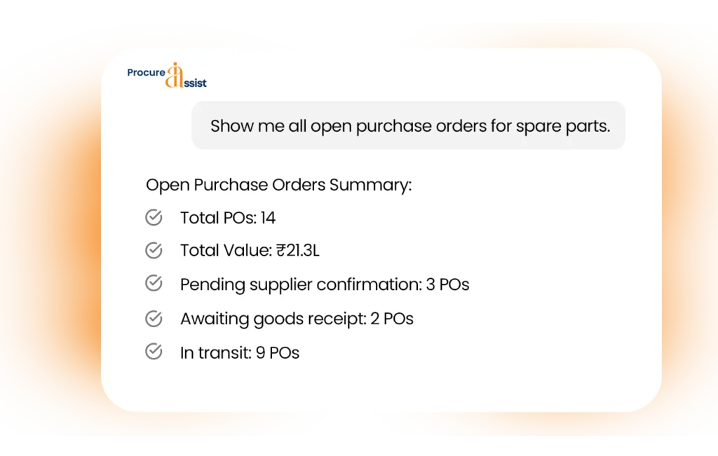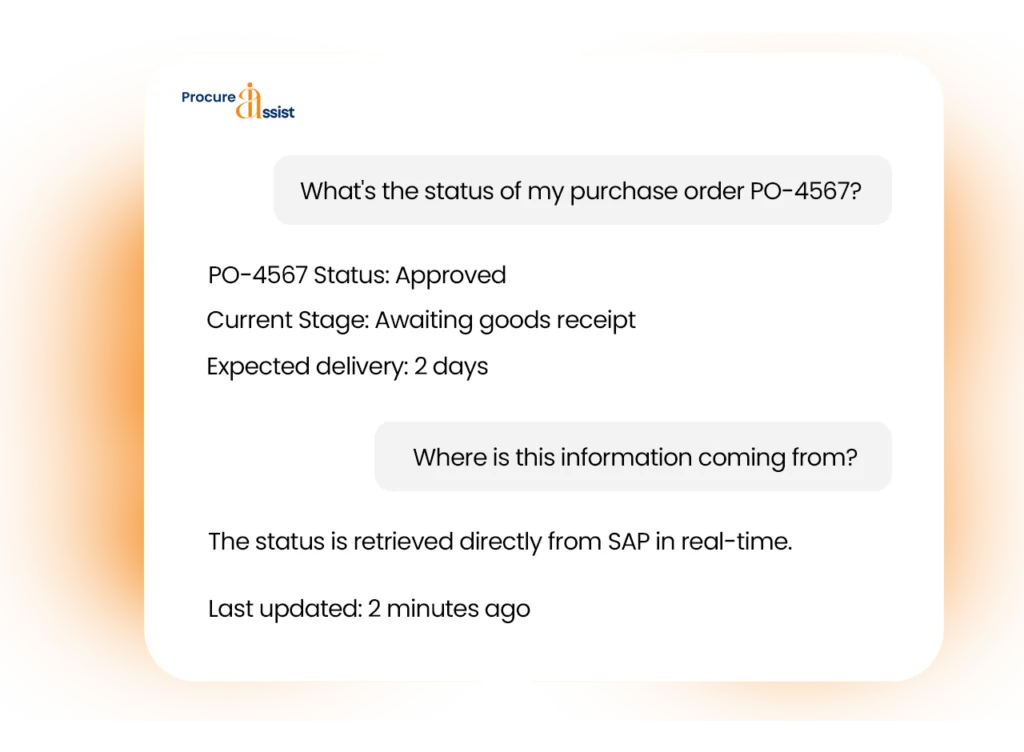 Our Procurement AIssist helps enterprises automate supplier engagement, purchase order workflows, contract matching, spend visibility, and exception handling — delivering clearer context, faster execution, and full governance.